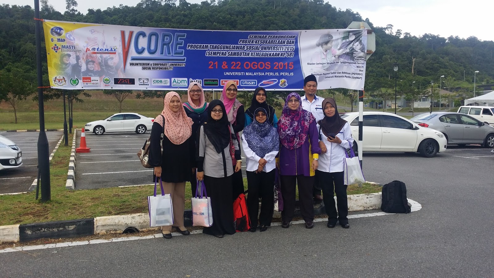 Seramai 14 orang Ahli PPUiTM terlibat dengan Seminar Perkongsian Projek Kesukarelaan dan Program Tanggungjawab Sosial Universiti 2015 (VCORE) yang berlangsung di Universiti Malaysia Perlis (UniMAP) dari 21 hingga 22 Ogos 2015.