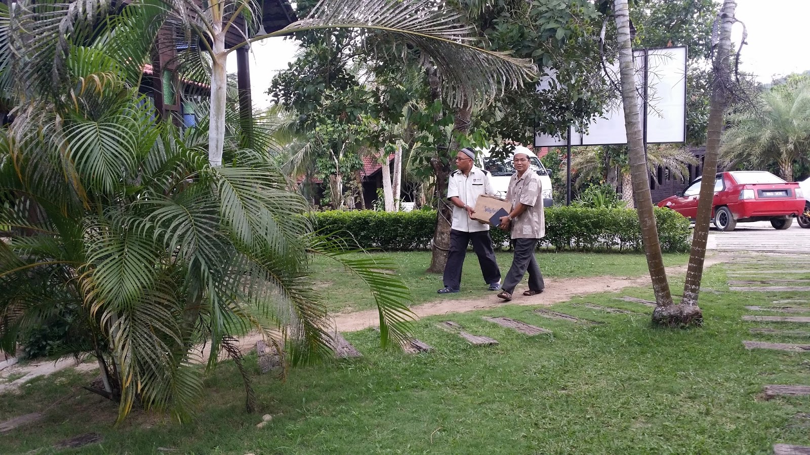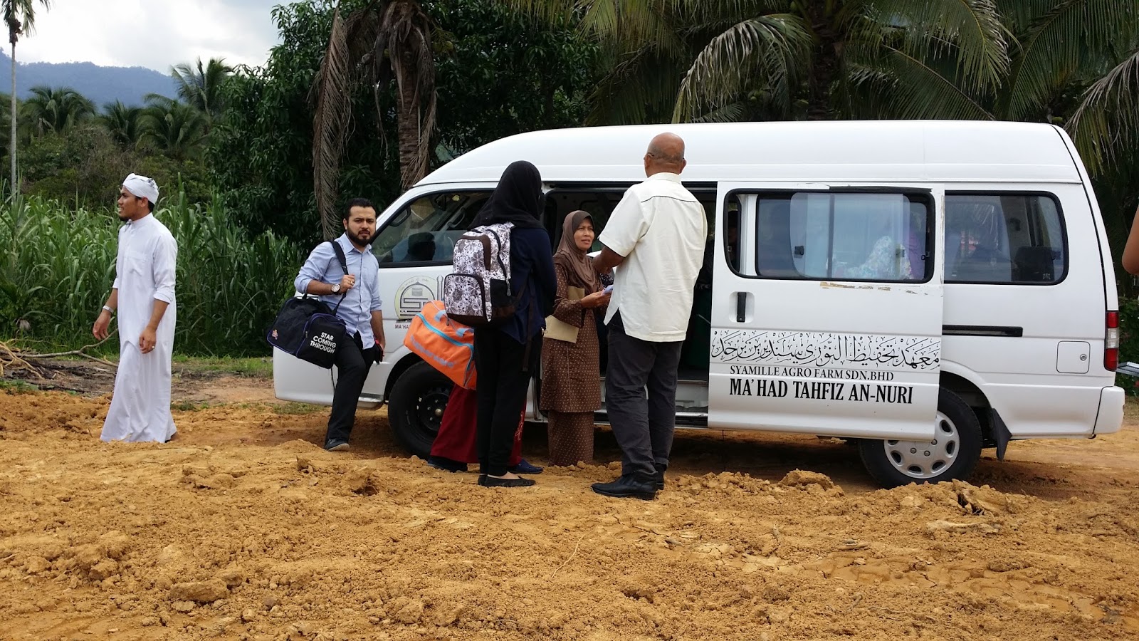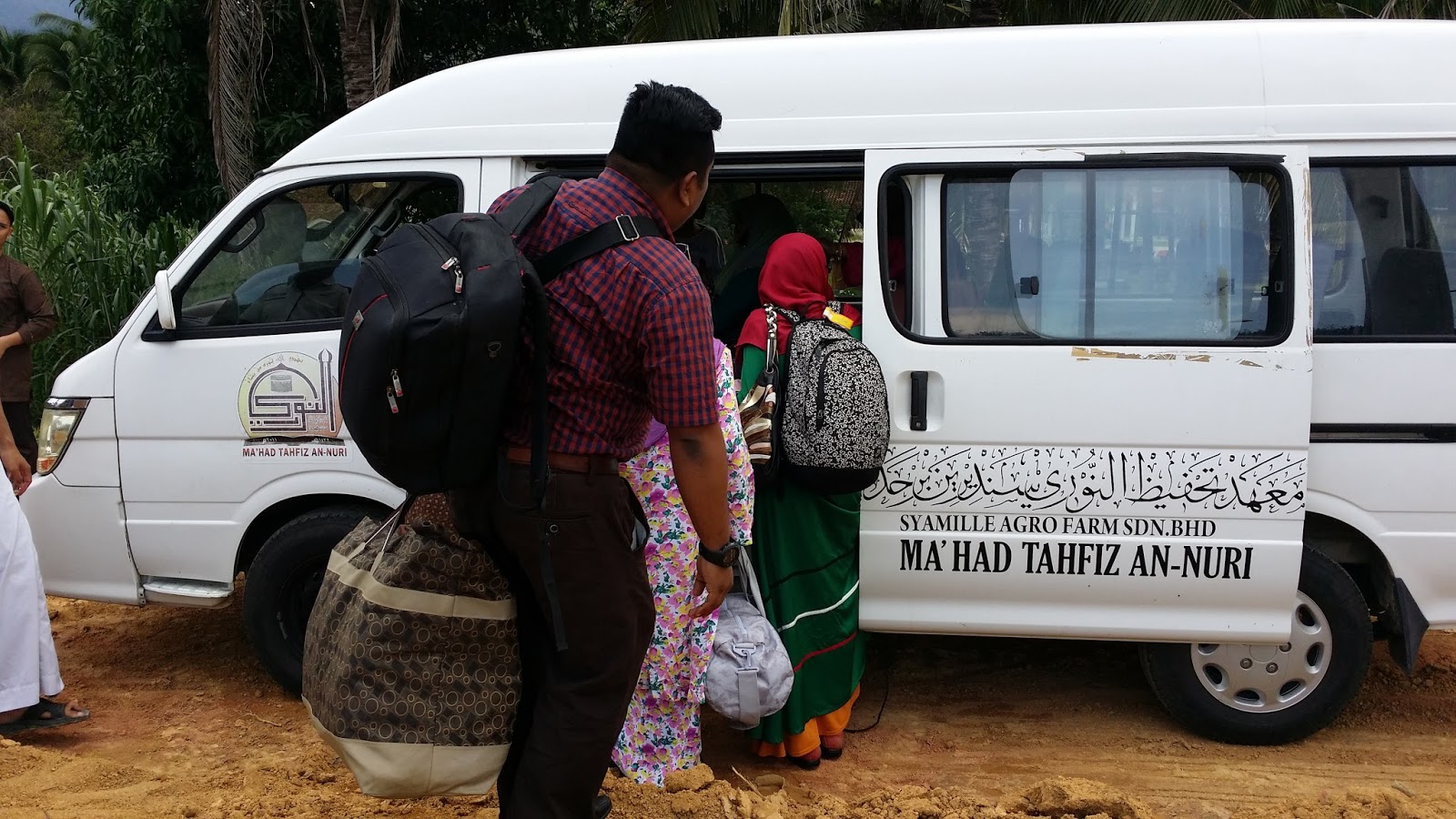 setibanya kami disana kami telah disambut oleh wakil Ma’had Tahfiz dengan van mereka untuk mengangkut kami masuk kedalam kerana bas rombongan kami tidak boleh memasuki jalan ke tempat Syamille Agro Farm & Resort yang agak sempit.